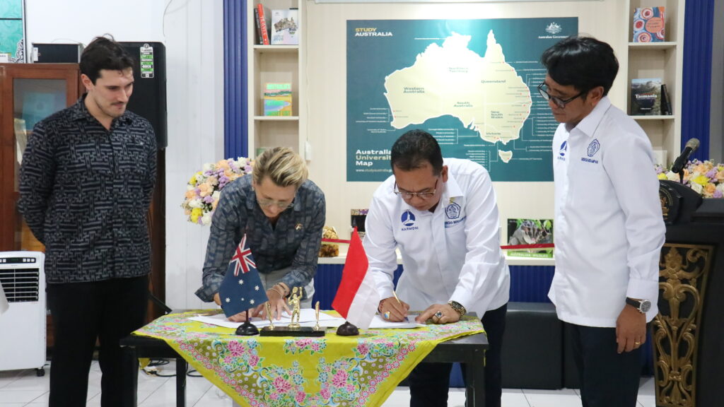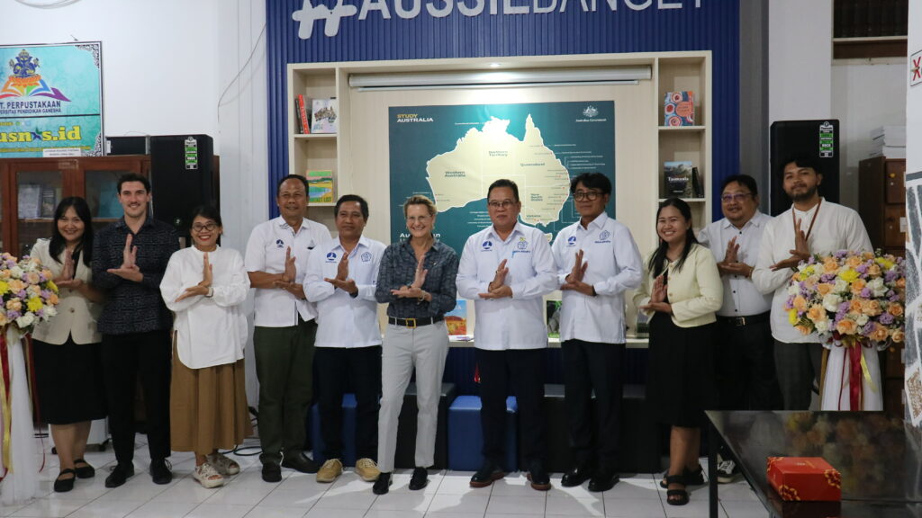 Singaraja — Universitas Pendidikan Ganesha (Undiksha) secara resmi membuka Aussie Banget Corner yang bertempat di Lantai 1 Gedung Perpustakaan Undiksha, pada Senin (12/01/2026). Sebuah sudut yang menjadi pusat informasi tentang Australia bagi sivitas akademika Undiksha. Peresmian ini menjadi langkah strategis Undiksha dalam memperluas akses informasi internasional, khususnya yang berkaitan dengan studi dan beasiswa Australia. Kegiatan peresmian tersebut dipimpin secara langsung oleh Rektor Undiksha, Prof. Dr. I Wayan Lasmawan, M.Pd., bersama Konsulat Jenderal Australia di Bali, Jo Stevens.
